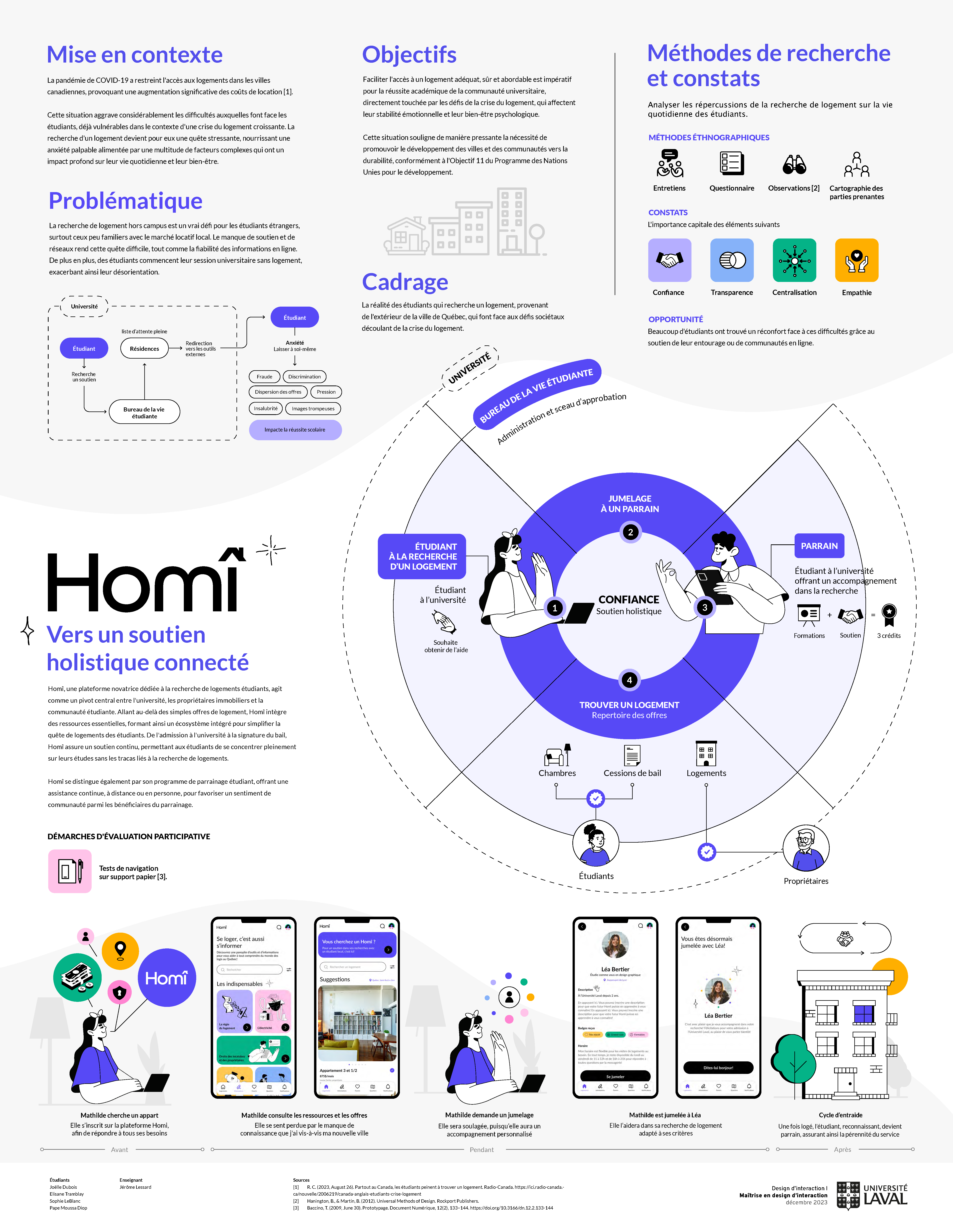 Une solution holistique axée sur l'utilisateur, visant à simplifier le processus de recherche de logement chez les étudiants, tout en renforçant le soutien communautaire et la confiance au sein de l'environnement académique des institutions universitaires québécoises.