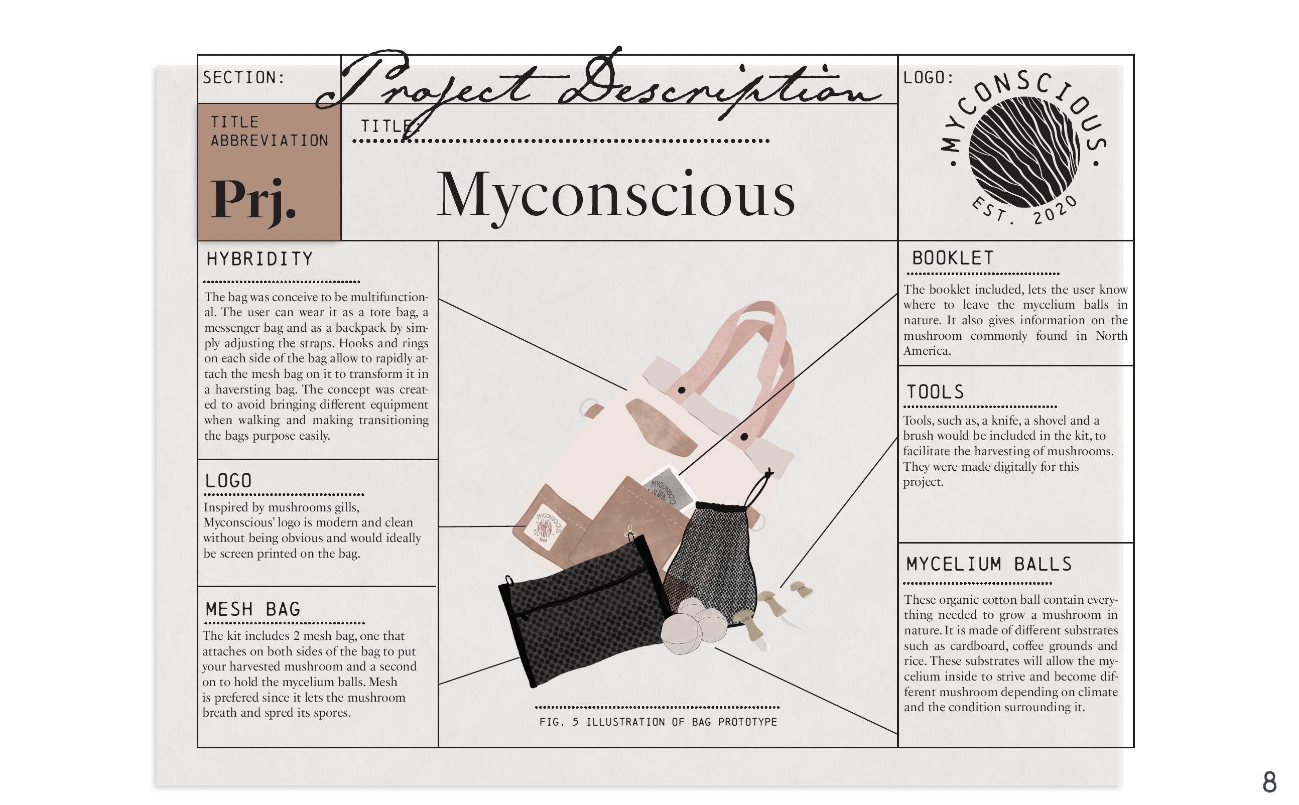 Myconscious résulte de recherches approfondies sur les champignons Pleurotus, révélant leur rôle vital dans l'équilibre écologique. Nous avons conçu un sac innovant pour promouvoir la cueillette responsable et la régénération des champignons, permettant au grand public de contribuer à la préservation de l'environnement.